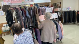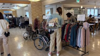 こちらの施設様では、年に2回ほどお買い物イベントを開催いただいております。開催前から待ちきれず、ご来店される方が数名おり、楽しみにしてくださっていたのかととても嬉しく思います。衣類も食品も両方楽しみにしてくださった方が多く、職員様と一緒にお...